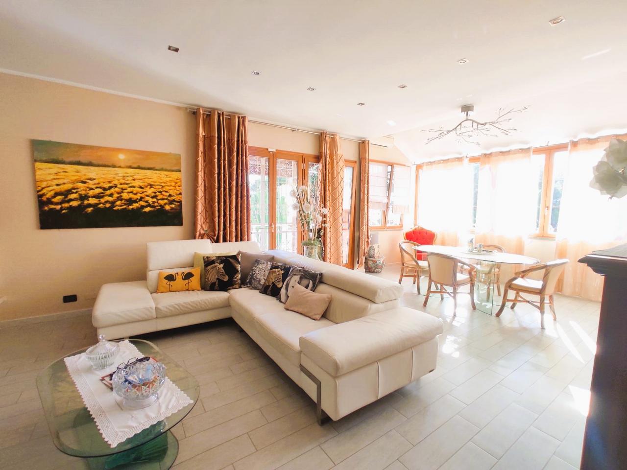 Asso Immobiliare ti propone un bellissimo appartamento in villa con ingresso indipendente e ampi spazi esterni. L'ingresso è dal giardino, il vialetto ci conduce alla bellissima e soleggiata terrazza, attrezzata con gazebo, barbecue, sdraio, uno spazio ideale per trascorrere tempo libero o accogliere gli amici, l'ingresso ci conduce al grande salone con camino, la sala da pranzo è incorniciata da vetrate che danno grande luminosità agli spazi, la cucina, organizzata con doppio sistema di cottura, a gas e piano induzione, la zona notte è separata dalla zona giorno da un disimpegno, qui abbiamo tre stanze da letto e doppi servizi. Il riscaldamento è autonomo a pavimento, il caminetto a legna è funzionante, l'appartamento è climatizzato ed esiste un impianto con pannelli solari per produrre acqua calda sanitaria. Ideale per residenti e non, per chi ama gli spazi ampi, la comodità e poter godere di ampi spazi all'aperto. Visitate il nostro sito per vedere il virtual tour, contattateci per fissare un appuntamento. Siamo aperti tutti i giorni. Chiusi il giovedì. Domenica dalle 10.00 alle 12.00.