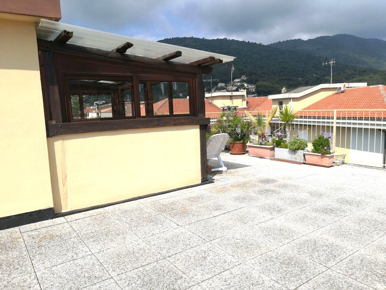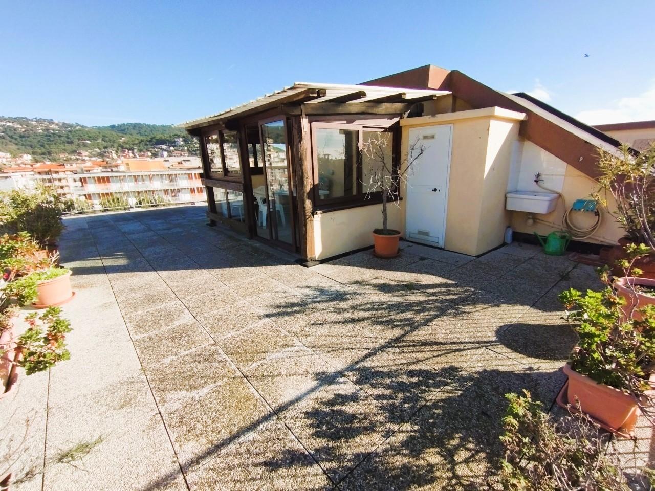 Benvenuti al nostro attico in vendita a Andora, situato in posizione centrale e comodo a tutti i servizi. L'alloggio si trova all'ultimo piano ed è servito da ascensore. L'immobile è composto da un ingresso, un accogliente soggiorno con balcone, una cucina abitabile, una spaziosa camera con balcone, un ripostiglio e un bagno. Godrete di una tripla esposizione solare che garantisce luminosità tutto il giorno. Completano la proprietà un ampio terrazzo/solarium attrezzato con tettoia, una cantina e un posto auto condominiale. Il riscaldamento è centralizzato con valvole per un comfort ottimale. Non lasciatevi sfuggire questa opportunità unica!